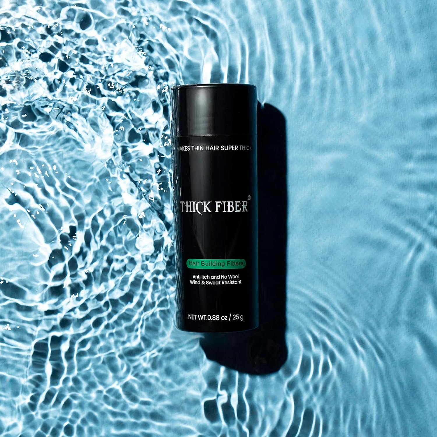 - Quality you can depend on. THICK FIBER hair fibers for thinning hair fibers product was made strictly with natural keratin protein fibers (the same natural compound that binds your hair strands). No harmful chemicals are ever used; it’s a completely natural hair thickener. THICK FIBER is also the reason why our hair-building fibers are Anti itch and highly resistant to sweat and weather conditions.